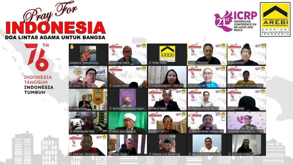 JAKARTA, KabarProperti.id – Asosiasi Real Estate Broker Indonesia (AREBI) menggelar acara Doa Lintas Agama Untuk Bangsa #PRAYFORINDONESIA yang dilakukan secara virtual melalui Zoom dan Youtube DPP AREBI, pada Jum’at (13/8/2021) lalu. Acara yang terbuka untuk umum, tanpa memandang Suku, Ras, dan Agama ini bekerjasama dengan Indonesian Conference on Religion and Peace (ICRP) dan merupakan rangkaian acara menuju event besar yang akan diselenggarakan AREBI pada akhir tahun mendatang yakni AREBI SUMMIT 2021 dan MUNAS.