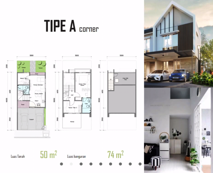 Rumah tipe A Standar memiliki luas bangunan 65 meter persegi dan luas lahan 50 meter persegi dengan 3 kamar tidur dan 2 kamar mandi. Sementara untuk tipe A Sudut memiliki luas lahan 50 meter persegi namun luas bangunannya mencapai 74 meter persegi dengan jumlah kamar tidur dan kamar mandi sama.