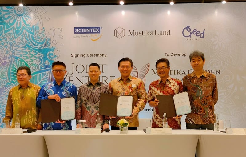 JAKARTA, KabarProperti.id – Mustika Land Group Indonesia, pengembang real estat Indonesia, Scientex Berhad, pengembang properti terkemuka Malaysia, dan Creed Group, perusahaan investasi real estat Jepang menandatangani perjanjian kerjasama. Dalam tahap pertama, ketiga perusahaan secara resmi mengumumkan dimulainya proyek pengembangan perumahan berupa rumah tapak murah (affordable landed house) di lahan seluas sekitar 5 hektar di Bekasi, Indonesia. Proyek perumahan ini bernama Mustika Garden Tamansari.