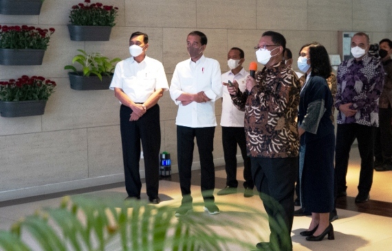 Presiden didampingi oleh Menteri Perencanaan Pembangunan Nasional, Dr. Ir. H. Suharso Monoarfa, Menteri Koordinator Bidang Kemaritiman dan Investasi, Jenderal TNI Luhut Binsar Pandjaitan, M.P.A., Menteri Sekretaris Negara, Prof Dr. Drs. Pratikno. M. Soc.Sc,. Menteri Investasi / Kepala Badan Koordinasi Penanaman Modal, Bahlil Lahadalia S.E., Gubernur Provinsi Banten, Dr. Drs. H. Wahidin Halim, M.Si., dan Bupati Kabupaten Tangerang, Ahmed Zaki Iskandar, B.Bus,. S.E. M.Si.